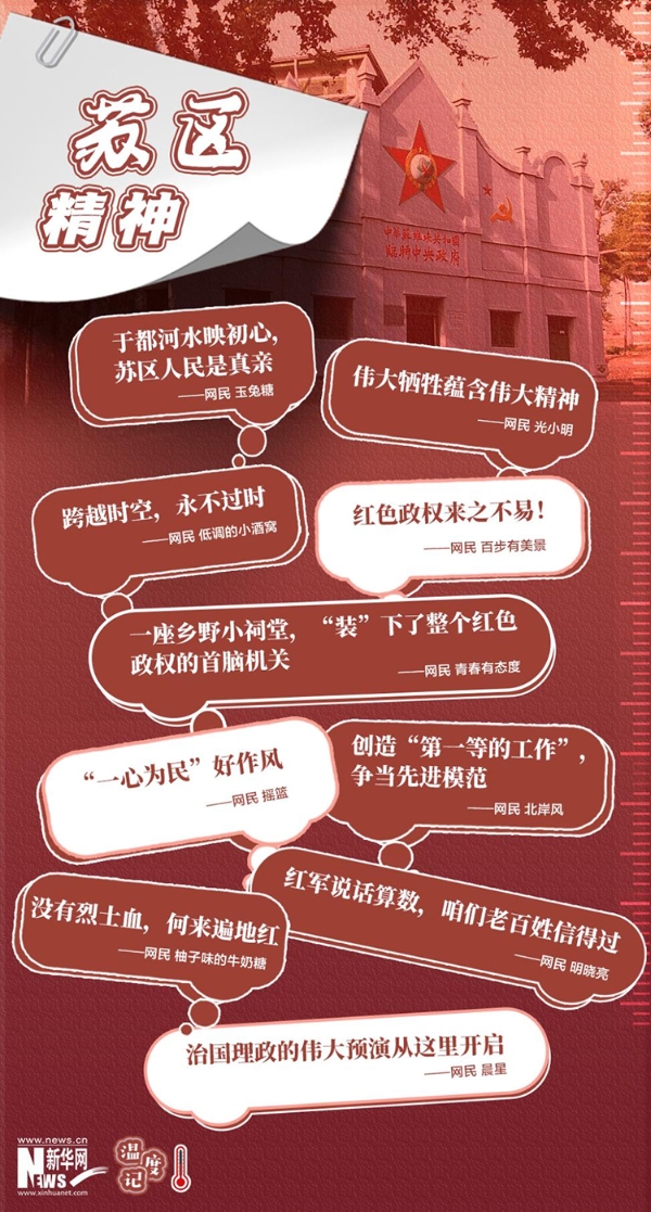 “永遠(yuǎn)向上的精神火焰”系列網(wǎng)評之三: “蘇區(qū)干部好作風(fēng),自帶干糧去辦公,日著草鞋干革命,夜打燈籠訪貧農(nóng)?!边@首至今傳唱的山歌,體現(xiàn)了中國共產(chǎn)黨人的優(yōu)良作風(fēng)和艱苦奮斗精神,表達(dá)了當(dāng)年蘇區(qū)人民對蘇區(qū)干部好作風(fēng)的贊頌之情。 光陰流轉(zhuǎn),斗轉(zhuǎn)星移,“人民至上”的初心始終不渝。當(dāng)年蘇區(qū)如火如荼的革命斗爭已成歷史記憶,但偉大的蘇區(qū)精神仍然閃爍著新的時代光芒。社交平臺上的網(wǎng)民們關(guān)于蘇區(qū)精神的留言,再次讓我們感受到以堅定信念、求真務(wù)實、一心為民、清正廉潔、艱苦奮斗、爭創(chuàng)一流、無私奉獻(xiàn)等為主要內(nèi)涵的蘇區(qū)精神的力量。這一精神是無數(shù)革命先輩用鮮血和生命鑄就的,是我們?nèi)谌胙}的信仰,有著生生不息的力量。(文字:董璐 海報設(shè)計:王曄)
