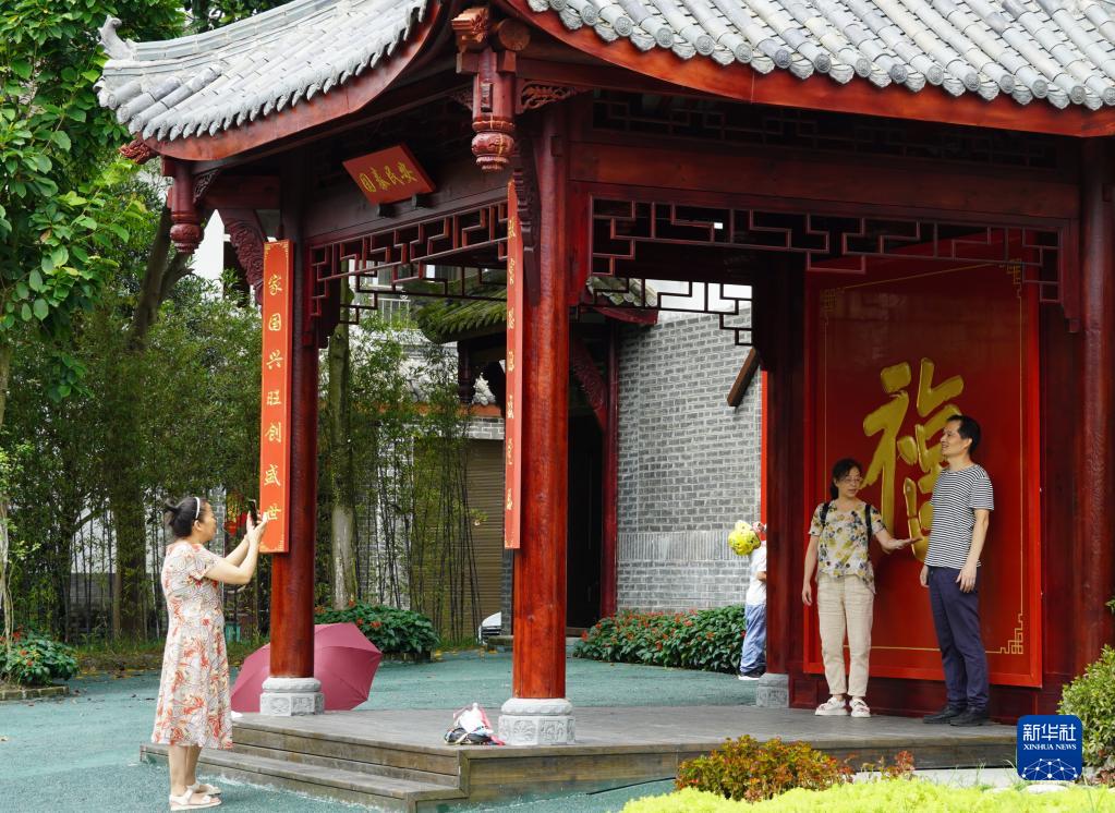 游客在成都市郫都區(qū)戰(zhàn)旗村拍照留念(8月8日攝)。新華社發(fā)(郭芯屹 攝) “火車跑得快,全靠車頭帶” 8月的戰(zhàn)旗村游人如織,白墻青瓦的民居綴在公園般的村莊中,村前廣場(chǎng)旁一列蒸汽機(jī)車的車頭格外顯眼?;疖囶^取名“戰(zhàn)旗號(hào)”,在村里人眼里,它不僅是裝飾,更是戰(zhàn)旗村在黨組織引領(lǐng)下接力奮斗的象征。 從大力發(fā)展經(jīng)濟(jì)創(chuàng)辦村集體企業(yè),到發(fā)展農(nóng)產(chǎn)品加工,探索產(chǎn)業(yè)化經(jīng)營(yíng)模式;從明晰集體資產(chǎn)產(chǎn)權(quán),開始土地規(guī)模化流轉(zhuǎn)經(jīng)營(yíng),到完成全村土地權(quán)屬調(diào)整,成功敲響四川土地入市改革第一槌……戰(zhàn)旗村發(fā)展一路高歌。 “火車跑得快,全靠車頭帶”,在戰(zhàn)旗村的發(fā)展歷程中,“火車頭”是黨組織,而跑得快的關(guān)鍵便是始終抓住“黨建引領(lǐng)”不放松。 “在戰(zhàn)旗村,黨員們要經(jīng)常問自己:入黨為了什么?作為黨員做了什么?作為合格黨員示范帶動(dòng)了什么?”戰(zhàn)旗村黨委書記高德敏說,“在戰(zhàn)旗村,每一位黨員都要發(fā)揮先鋒模范作用,要帶著大家干,干給大家看。” 近年來,一些年輕黨員紛紛回到家鄉(xiāng),成為景區(qū)和產(chǎn)業(yè)工作人員。“年輕黨員參與鄉(xiāng)村治理至關(guān)重要,他們更熟悉了解情況,也是村里為未來培養(yǎng)的人才?!备叩旅粽f,戰(zhàn)旗村165名黨員主動(dòng)帶頭領(lǐng)辦項(xiàng)目、參與村務(wù),贏得了村民信賴。 高德敏介紹,戰(zhàn)旗村黨委始終抓住“黨建引領(lǐng)”這個(gè)關(guān)鍵,提出七個(gè)“滿覆蓋”戰(zhàn)旗黨建工作法,建立黨員“三問三亮六帶頭”工作機(jī)制,確保黨員“有知識(shí),懂業(yè)務(wù)”,實(shí)現(xiàn)了“建強(qiáng)戰(zhàn)斗堡壘,引領(lǐng)改革興村,引領(lǐng)生態(tài)宜居,引領(lǐng)產(chǎn)業(yè)富民,引領(lǐng)鄉(xiāng)風(fēng)文明,引領(lǐng)服務(wù)便民”的“一強(qiáng)五引領(lǐng)”。