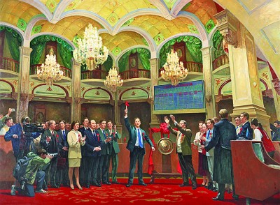 《開市祥鑼》(油畫) 章曉明 1.愛國情懷 茍利國家生死以,豈因禍福避趨之。優(yōu)秀的企業(yè)家,必然把企業(yè)發(fā)展同國家繁榮、民族興盛、人民幸福緊密結(jié)合在一起,主動為國擔當、為國分憂。 在新中國成立之初發(fā)行勝利折實公債時主動認購650萬份;抗美援朝時捐獻七架半飛機和大量衣物;對申新紡織公司等榮氏企業(yè)實行公私合營……榮毅仁,為新中國工業(yè)振興作出重要貢獻。改革開放后,作為中國國際信托投資公司創(chuàng)始人,他廣泛開展中外經(jīng)濟技術(shù)合作,將中信公司建成綜合性跨國企業(yè)集團。 在抗日戰(zhàn)爭后期興辦民族工業(yè),向解放區(qū)低價出售大量軍用物資和醫(yī)療用品;策劃組織天津工商界抗美援朝反美愛國示威大游行,號召天津工商界以“國家興亡,匹夫有責(zé)”的精神,與中國共產(chǎn)黨同心同德……王光英,作為改革開放后第一個總部設(shè)在香港的中資企業(yè)的掌舵者,制定了“扎根香港,背靠祖國,面向世界,實事求是,講求實效”方針,完成了廣東磨刀門工程、江門橋工程等項目。 沿著歷史的脈絡(luò)回望,愛國,始終是我國優(yōu)秀企業(yè)家的光榮傳統(tǒng)。