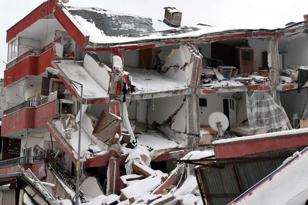 2月7日在埃爾比斯坦地區(qū)拍攝的地震中受損的建筑物。