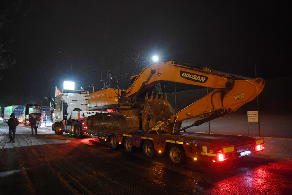 2月6日晚在伊斯坦布爾至安卡拉公路上拍攝的運往災(zāi)區(qū)的大型機械。