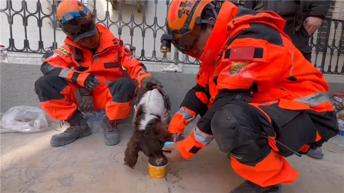搜救犬Lucky已經(jīng)連續(xù)參與現(xiàn)場作業(yè)超過三天。為保障最佳狀態(tài),救援間隙需要及時為它補充水份和食物。搜救犬訓導員高之江在一旁默默安撫Lucky,寸步不離,等待一起重返“戰(zhàn)場”。搜救犬不僅是我們的重要伙伴,更是親密“戰(zhàn)友”!
