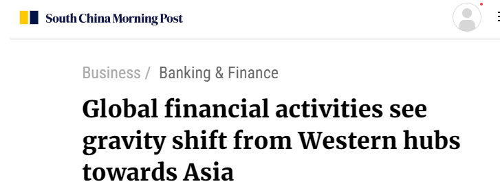 《南華早報》在21日的報道中曾提到,在過去十年中,全球金融活動的重心發(fā)生了變化,從傳統(tǒng)的北美和歐洲向亞洲轉(zhuǎn)移。大多數(shù)跡象表明,這種重新排序?qū)⑦M一步加速。