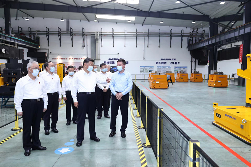 2022年8月17日,習(xí)近平總書記在沈陽新松機(jī)器人自動(dòng)化股份有限公司生產(chǎn)車間考察。