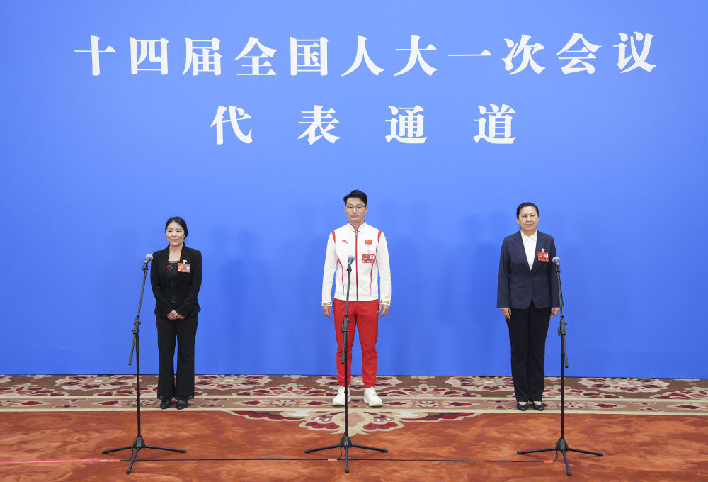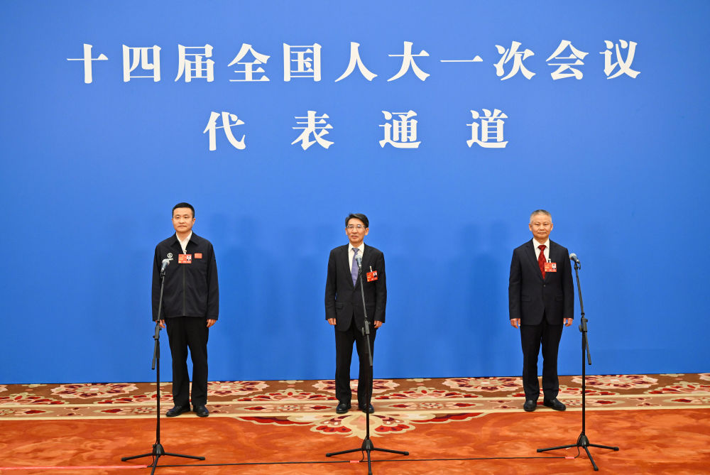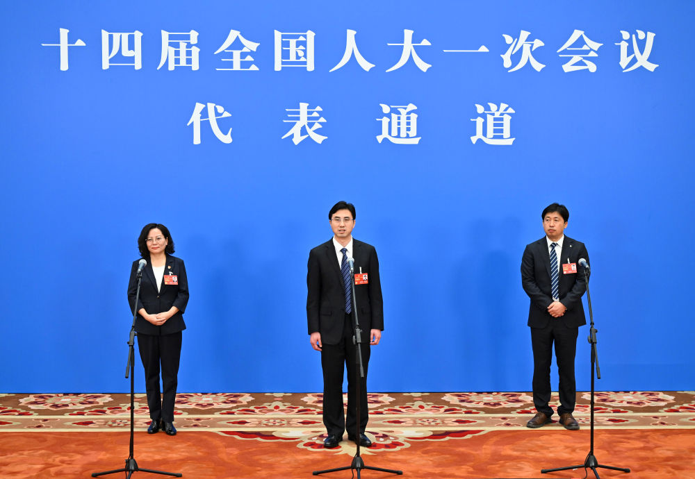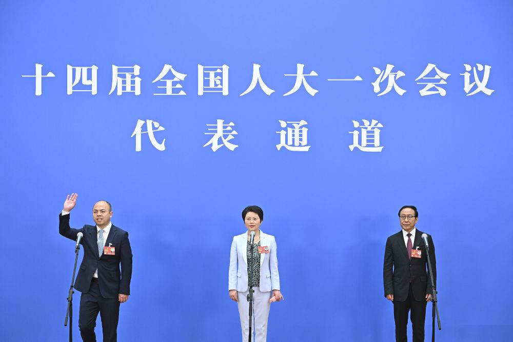 全國(guó)兩會(huì)期間,人民大會(huì)堂新聞發(fā)布廳,十四屆全國(guó)人大一次會(huì)議的三場(chǎng)“代表通道”如約開啟。