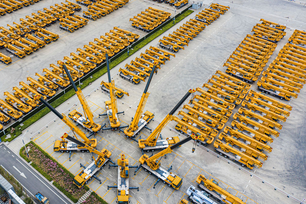 這是2022年5月9日拍攝的江蘇徐工集團重型機械有限公司的產(chǎn)品調(diào)試場(無人機照片)。新華社發(fā)
