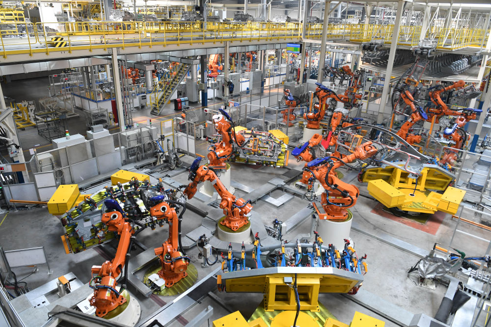機器人在浙江臨海的吉利汽車生產(chǎn)車間工作(2018年3月27日攝)。新華社記者 殷博古 攝