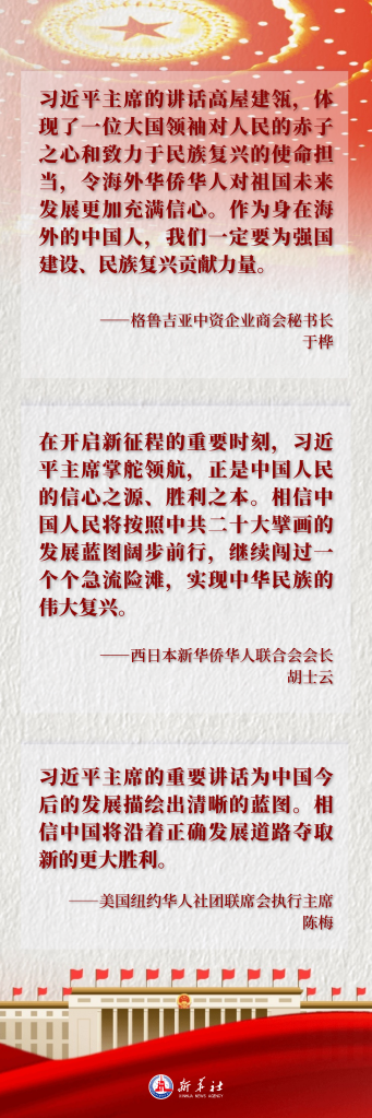 海外華僑華人表示,習(xí)近平主席的講話為在新征程上譜寫(xiě)中國(guó)式現(xiàn)代化新篇章指明方向,激發(fā)全體中華兒女的積極性、主動(dòng)性、創(chuàng)造性。
