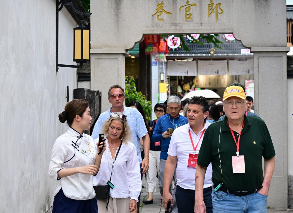6月27日,“鼓嶺之友”部分成員和中美各界人士在福州南后街三坊七巷參觀訪問(wèn)。(新華社記者 魏培全攝)