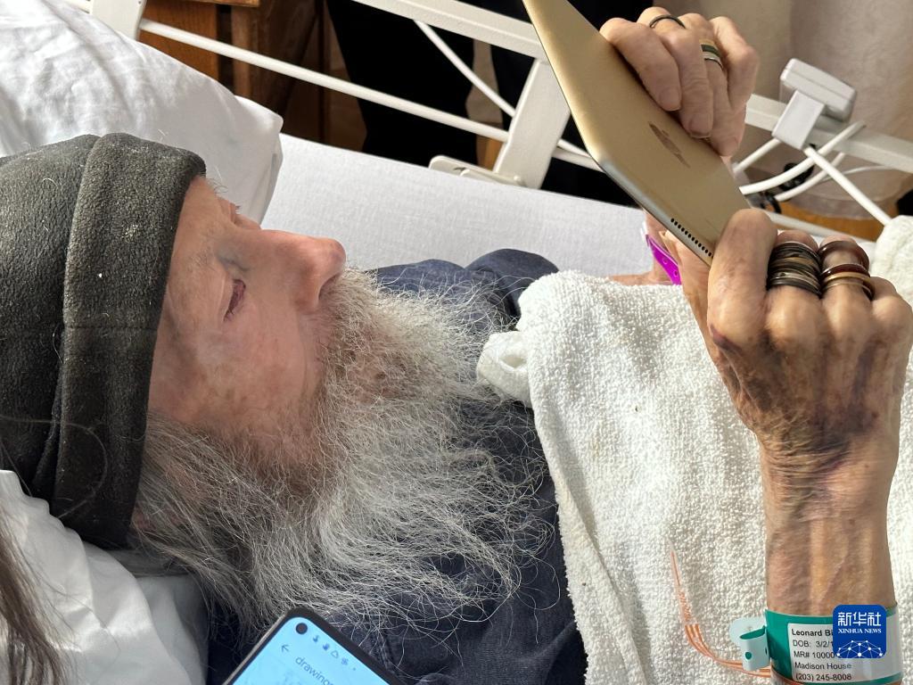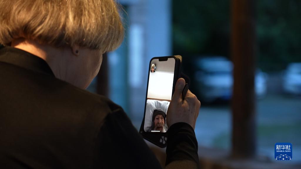 7月2日,103歲的美國(guó)老人林恩·柏齡在其家附近的康養(yǎng)中心病床上,以視頻連線的方式“重回”了他魂?duì)繅?mèng)繞87年的鼓嶺。新華社記者 楊士龍 攝