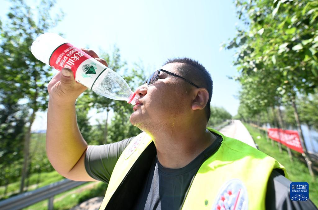 8月15日,應(yīng)急搶險隊隊員在巡護(hù)途中補(bǔ)水。