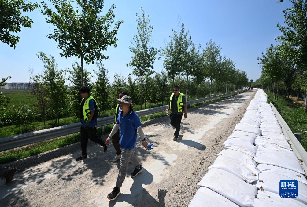 目前,大清河洪水紅色預(yù)警仍在生效中,天津市行洪工作持續(xù)進(jìn)行。8月15日,在位于天津市靜海區(qū)臺頭鎮(zhèn)清北地區(qū)北圍埝上,由應(yīng)急搶險專家、基層黨員干部等組成的應(yīng)急搶險隊頂著烈日巡護(hù)、排查堤壩風(fēng)險,確保洪水順利下泄和人民群眾生命財產(chǎn)安全。