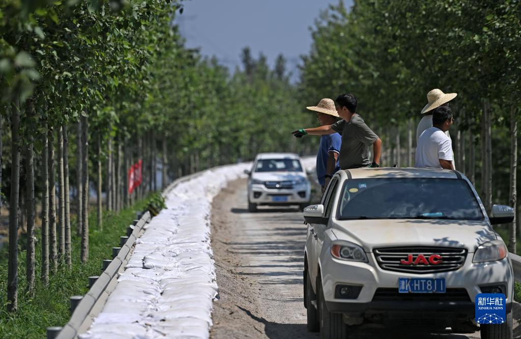 8月15日,應(yīng)急搶險隊在天津市靜海區(qū)臺頭鎮(zhèn)清北地區(qū)北圍埝上巡護(hù)排查。