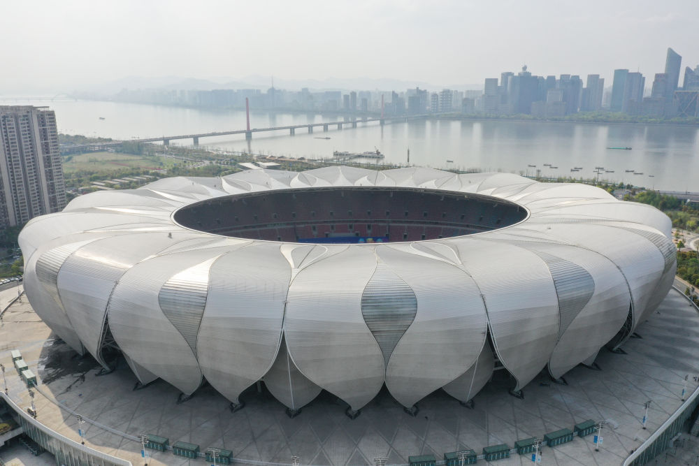 這是2022年3月30日拍攝的杭州奧體中心體育場(chǎng)(無(wú)人機(jī)照片)。新華社記者 黃宗治 攝