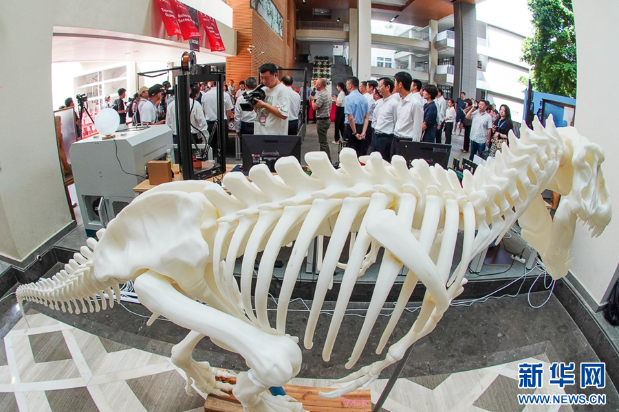 9月12日,福州第三中學,師生用3D打印技術制造的霸王龍骨骼模型展示。新華網 肖和勇 攝