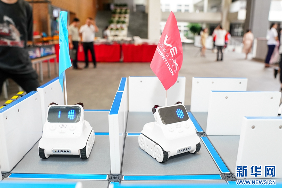 9月12日,福州第三中學,學生進行VEX機器人競賽。新華網 肖和勇 攝