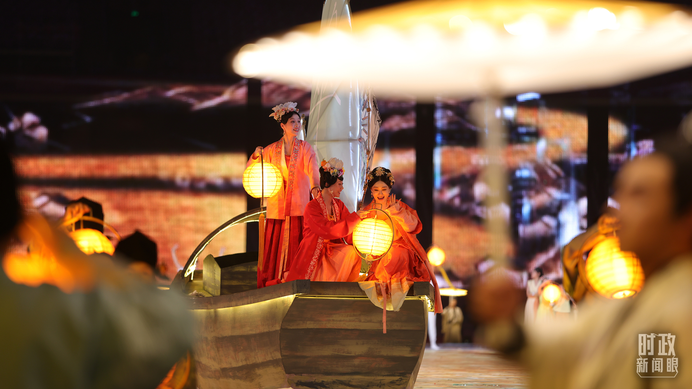 △開幕式迎賓表演《水潤秋輝》。(總臺央視記者魏幫軍拍攝) 02 開幕式:幕后故事 打動人心 開幕式上,運河風、西湖景、錢塘潮,多次撲面而來。 在《國風雅韻》篇中,宋韻女子泛舟大運河,拱宸橋躍然于兩岸之間,一岸連接古代,一岸通往現代?!耙蛔板窐颍氩亢贾菔?。”另一個吉祥物“宸宸”,也正是以杭州的重要地標——拱宸橋為原型設計。