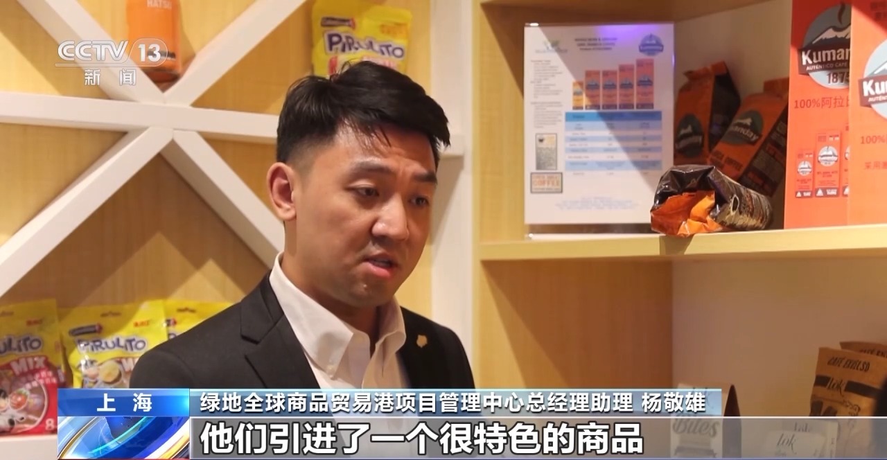 綠地全球商品貿(mào)易港項(xiàng)目管理中心總經(jīng)理助理 楊敬雄:比如像哥倫比亞的進(jìn)口館,從去年進(jìn)博會(huì)開始,他們引進(jìn)了一個(gè)很特色的商品,哥倫比亞的巧克力,它的包裝是完全用甘蔗的纖維來做的,可以達(dá)到百分之百可降解,這樣包裝的一些材料的運(yùn)用是越來越貼近我們環(huán)保的理念,這樣一些內(nèi)容,其實(shí)在各個(gè)館里面都有體現(xiàn)。