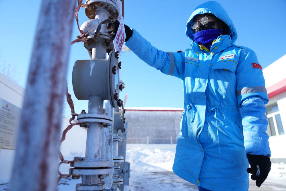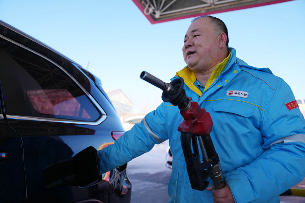 2月2日,中石油黑龍江撫遠東方第一加油站加油員肖洋靈在給車輛加油。