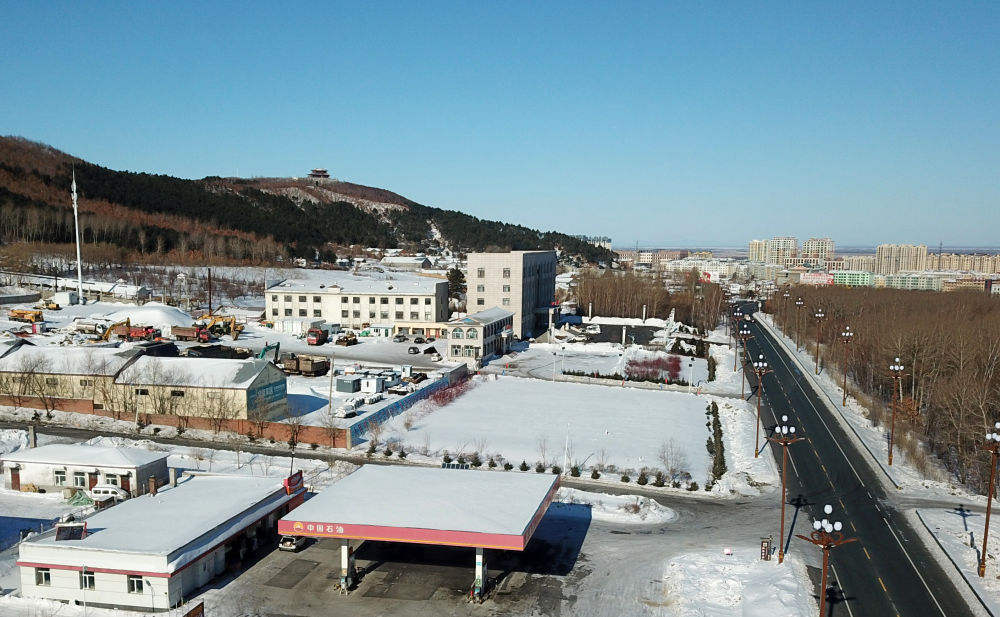 2月2日拍攝的中石油黑龍江撫遠東方第一加油站(無人機照片)。