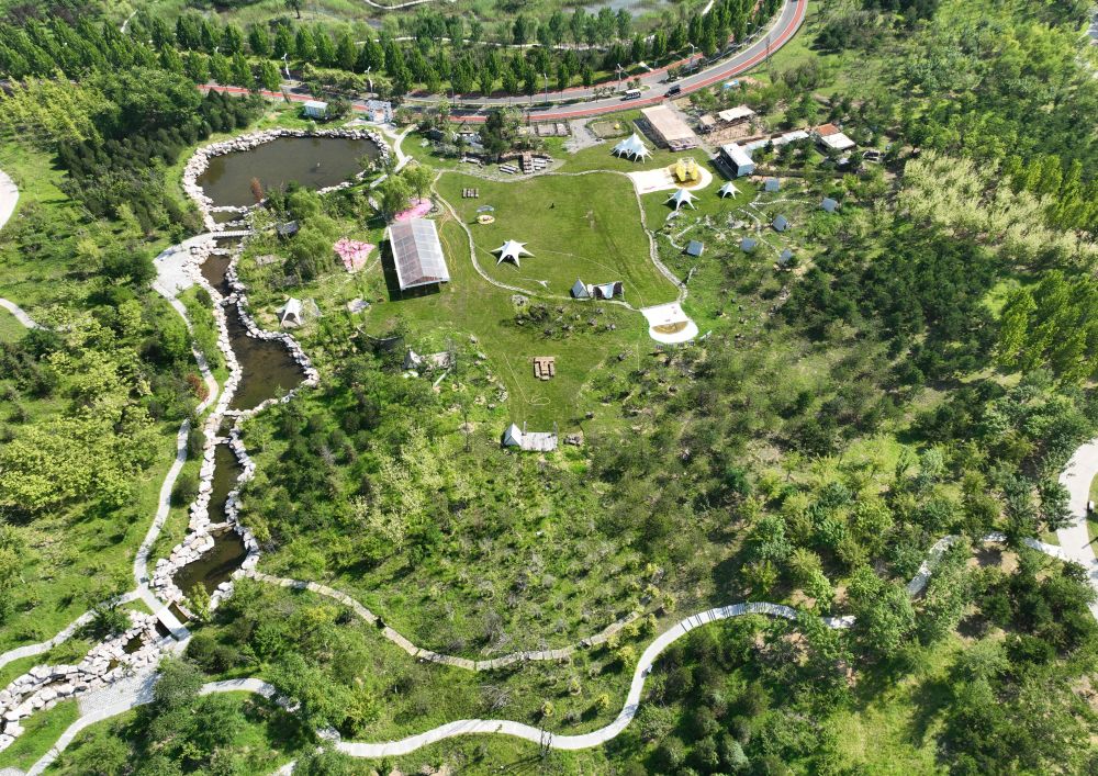 2023年7月25日拍攝的河北唐山花海景區(qū)(無人機照片)。該景區(qū)曾是采煤塌陷區(qū),2018年以來,唐山市開平區(qū)持續(xù)對這一區(qū)域進行生態(tài)修復(fù),并引入露營、餐飲、游樂園等旅游業(yè)態(tài),將其打造成為“城市后花園”和生態(tài)城市建設(shè)的新名片,實現(xiàn)“礦區(qū)變景區(qū)”的“綠色轉(zhuǎn)身”。