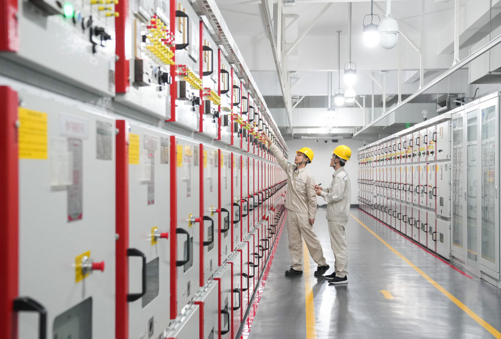 2023年11月4日,第六屆中國國際進口博覽會開幕前夕,國網(wǎng)上海青浦供電公司工作人員在變電站內(nèi)巡視。此屆進博會通過省間綠電交易的方式,成功采購綠電800萬千瓦時,覆蓋本屆進博會展前、展中、展后期間的全部用電量,也標志著進博會首次實現(xiàn)全綠電辦展。