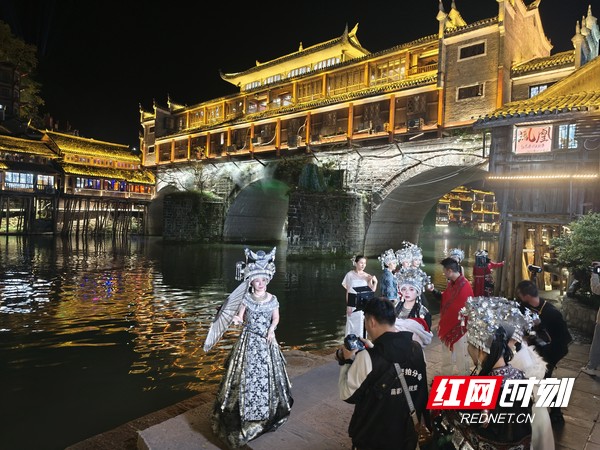 鳳凰古城以其人地相宜的街巷肌理、具有吊腳樓特色的明清建筑、多民族交融的民俗風情,吸引著各地游客。豐富的歷史文化資源,催生出了依托古城為攝影基地的“旅拍”新業(yè)態(tài),游客在這里體驗傳統(tǒng)服飾、風俗習慣等,記錄下與鳳凰相關的美好瞬間。