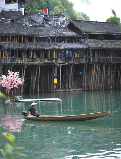 湖南湘西土家族苗族自治州鳳凰古城的吊腳樓沿沱江而建,鱗次櫛比,錯(cuò)落有致。古色古香的建筑通風(fēng)防潮,避暑御寒,極具工藝審美和文物研究價(jià)值。圖為鳳凰古城吊腳樓一瞥。 俄羅斯籍游客 魯?shù)履贰に緥I娜攝