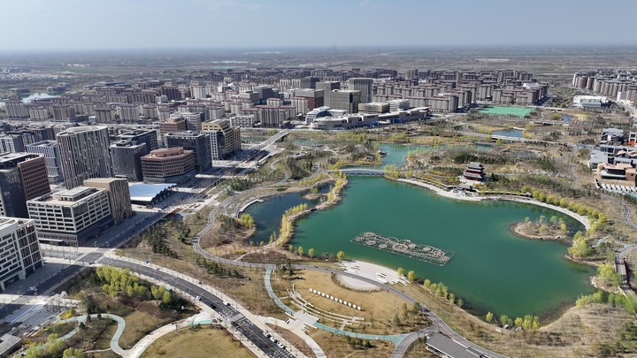 這是雄安新區(qū)金湖公園(2024年3月29日攝,無人機(jī)照片)。新華社記者 牟宇 攝