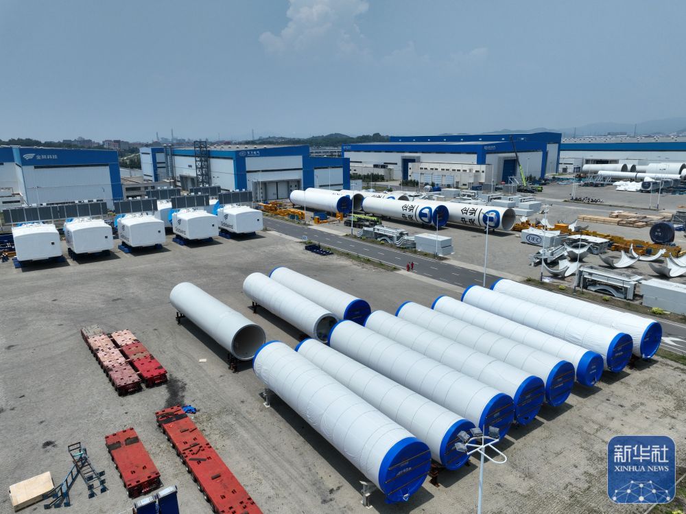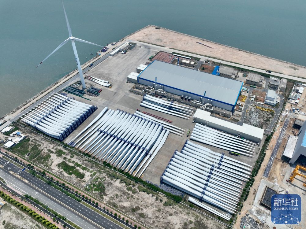 ↑福建三峽海上風(fēng)電國(guó)際產(chǎn)業(yè)園內(nèi)東方電氣風(fēng)電(福建)有限公司生產(chǎn)基地一角(2023年11月10日攝,無(wú)人機(jī)照片)。