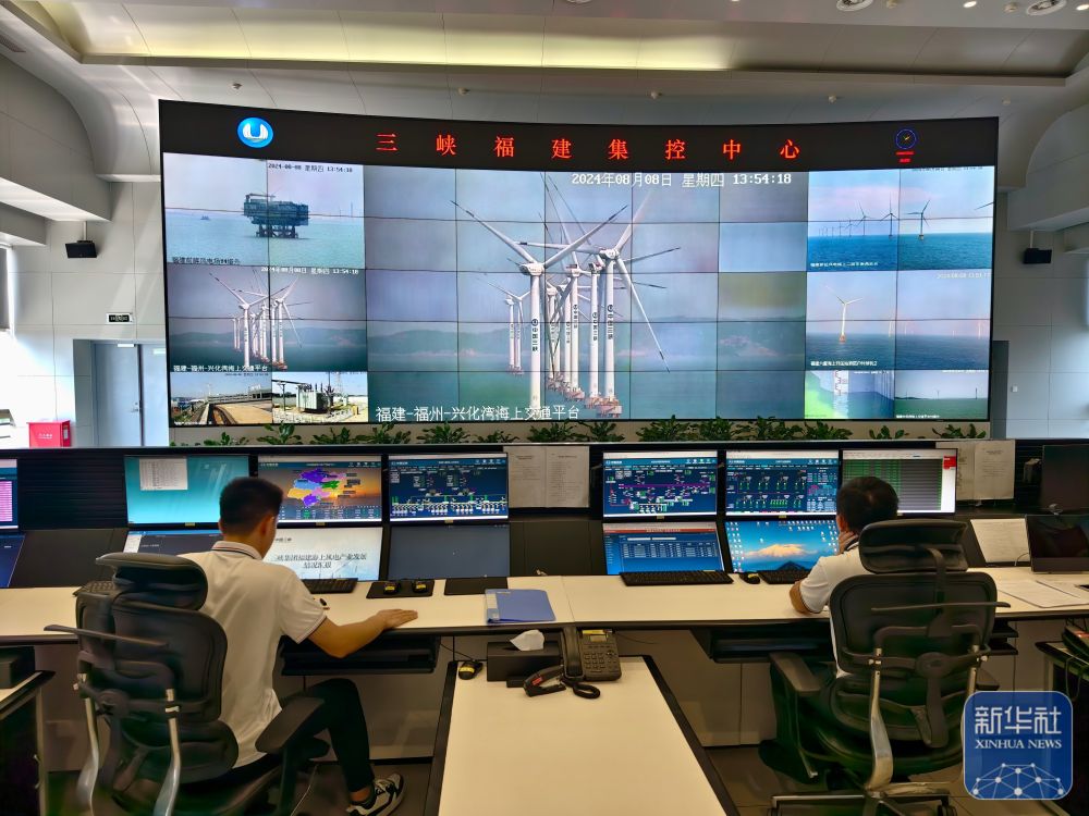 ↑8月8日,工作人員在福建三峽海上風(fēng)電國(guó)際產(chǎn)業(yè)園三峽福建集控中心內(nèi)值守。