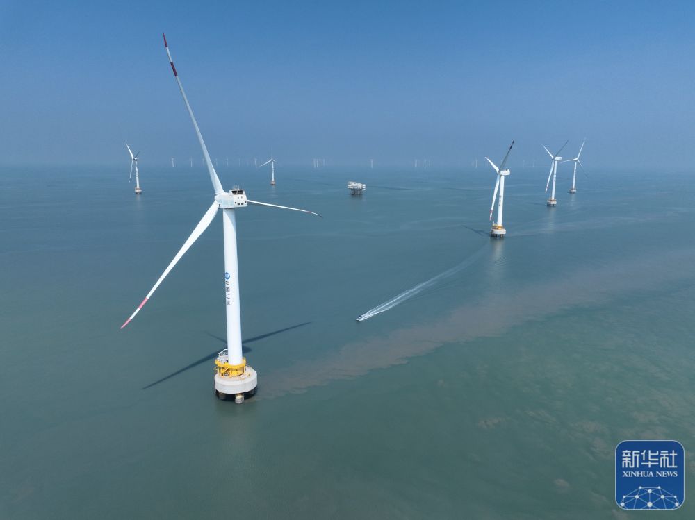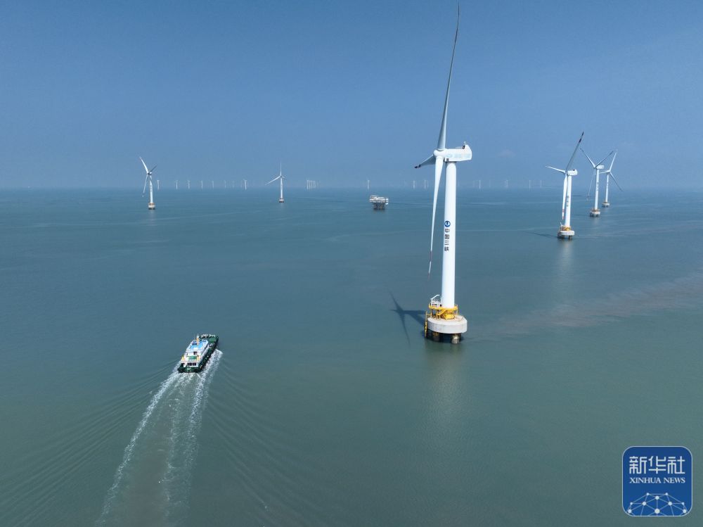 ↑這是8月8日拍攝的三峽福清興化灣海上風(fēng)電場(chǎng)(無(wú)人機(jī)照片)。福建三峽海上風(fēng)電國(guó)際產(chǎn)業(yè)園自主生產(chǎn)的部分海上風(fēng)電機(jī)組在這里裝機(jī)投產(chǎn)。