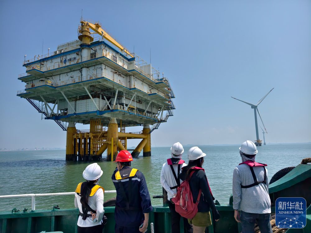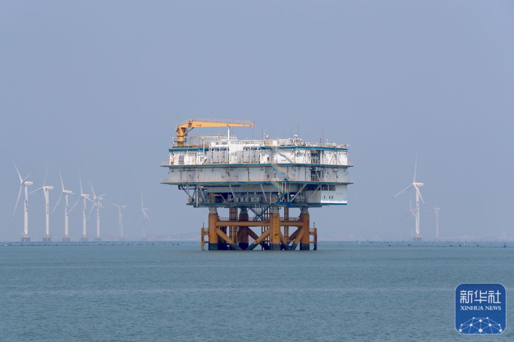 ↑這是8月8日拍攝的三峽福清興化灣海上風(fēng)電場(chǎng)海上升壓站。福建三峽海上風(fēng)電國(guó)際產(chǎn)業(yè)園自主生產(chǎn)的部分海上風(fēng)電機(jī)組在這個(gè)風(fēng)電場(chǎng)裝機(jī)投產(chǎn)。
