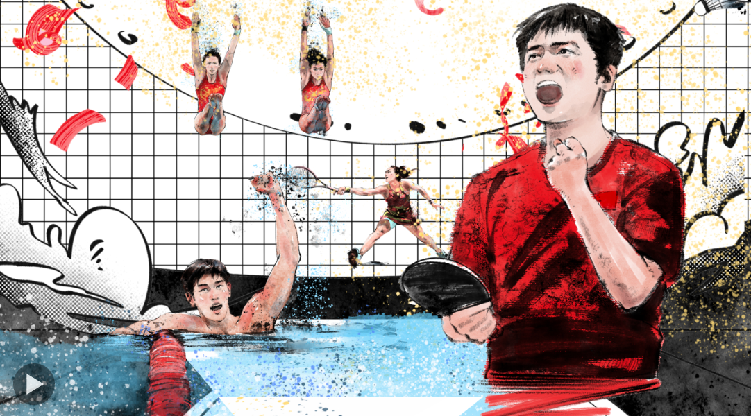 一鏡到底!水墨手繪再現(xiàn)中國奧運健兒高燃瞬間