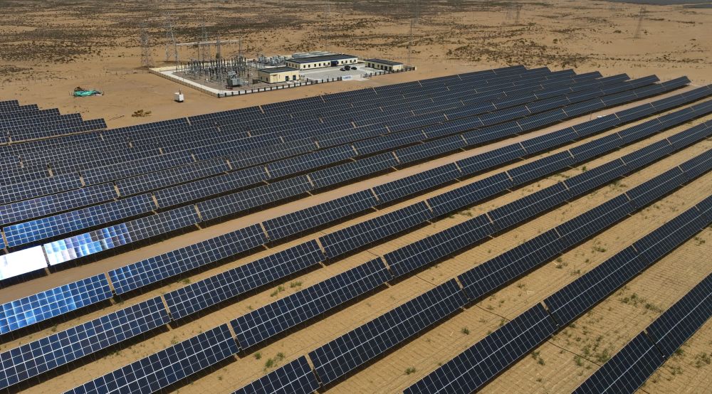 酷夏中,內(nèi)蒙古自治區(qū)巴彥淖爾市磴口縣境內(nèi)極度缺水的烏蘭布和沙漠里,一排排光伏板整齊排列。光伏板吸收大量陽(yáng)光,不僅可以輸出“綠色電力”,還能在板下為梭梭等沙生植物提供更適宜的生長(zhǎng)空間。梭梭能發(fā)揮固沙之用,還能接種肉蓯蓉,助力發(fā)展中藥材種植產(chǎn)業(yè)?;哪卫?、綠色能源、農(nóng)業(yè)創(chuàng)收,就這樣結(jié)合在一起,形成一條“光伏發(fā)電+生態(tài)治理”的綠色轉(zhuǎn)型鏈條。
