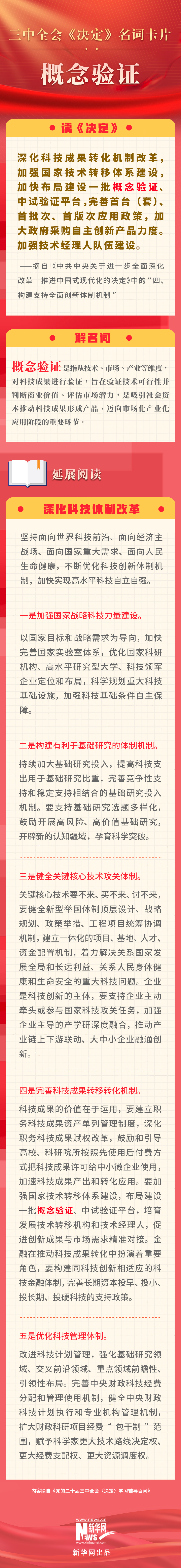 黨的二十屆三中全會審議通過了《中共中央關(guān)于進一步全面深化改革、推進中國式現(xiàn)代化的決定》。新華網(wǎng)依據(jù)《黨的二十屆三中全會〈決定〉學習輔導百問》,制作三中全會《決定》系列名詞卡片,和大家一起來深入學習領會二十屆三中全會精神。本期名詞是“概念驗證”。