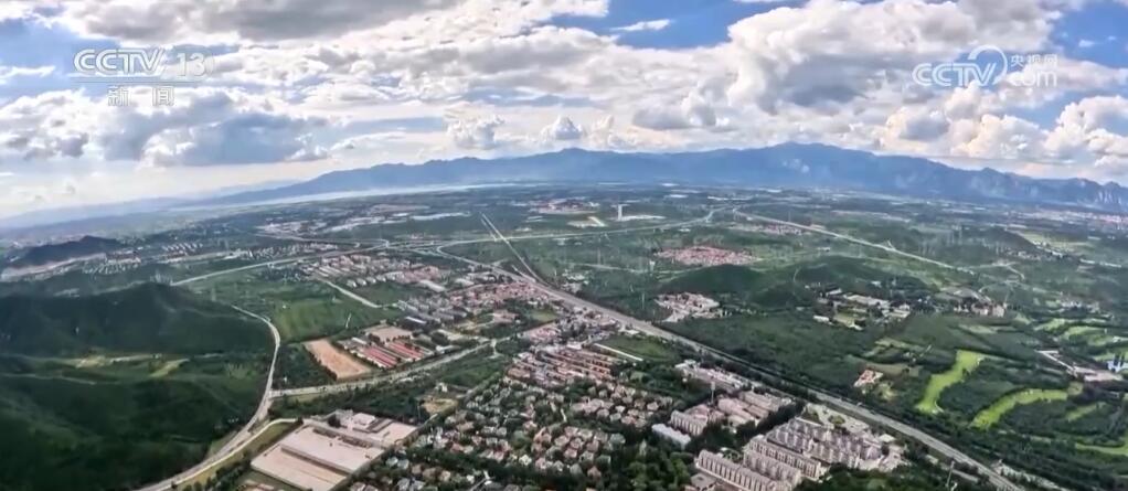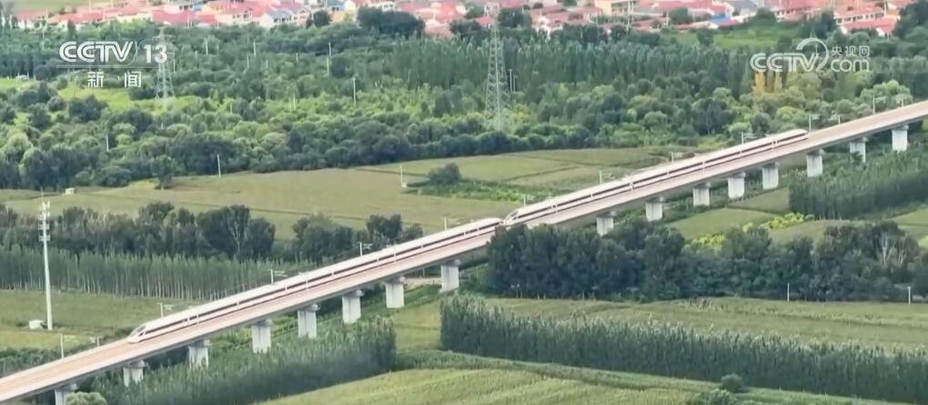 沿著京張高鐵上空一路飛行,可以看到不時有列車通過。京張高鐵是世界首條智能高鐵示范線,首次實現(xiàn)了時速350公里的自動駕駛。2022年北京冬奧會期間,觀眾可以乘坐京張高鐵便捷往返北京和張家口的各個賽場。