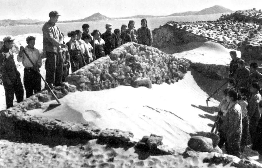 △ 谷文昌在山口村察看風(fēng)沙災(zāi)情,與當(dāng)?shù)厝罕娨黄鹛接懼紊沉疾摺?/span>
