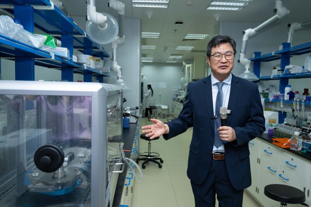 2024年6月17日,中藥質量研究國家重點實驗室(澳門大學)主任、澳門大學中華醫(yī)藥研究院院長陳新介紹實驗室情況。