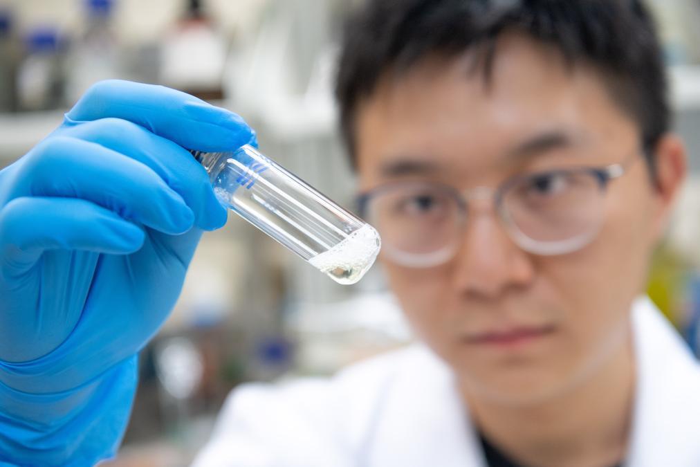 2019年11月1日,在中藥質量研究國家重點實驗室(澳門大學),學生觀察藥物樣品的溶解狀態(tài)。