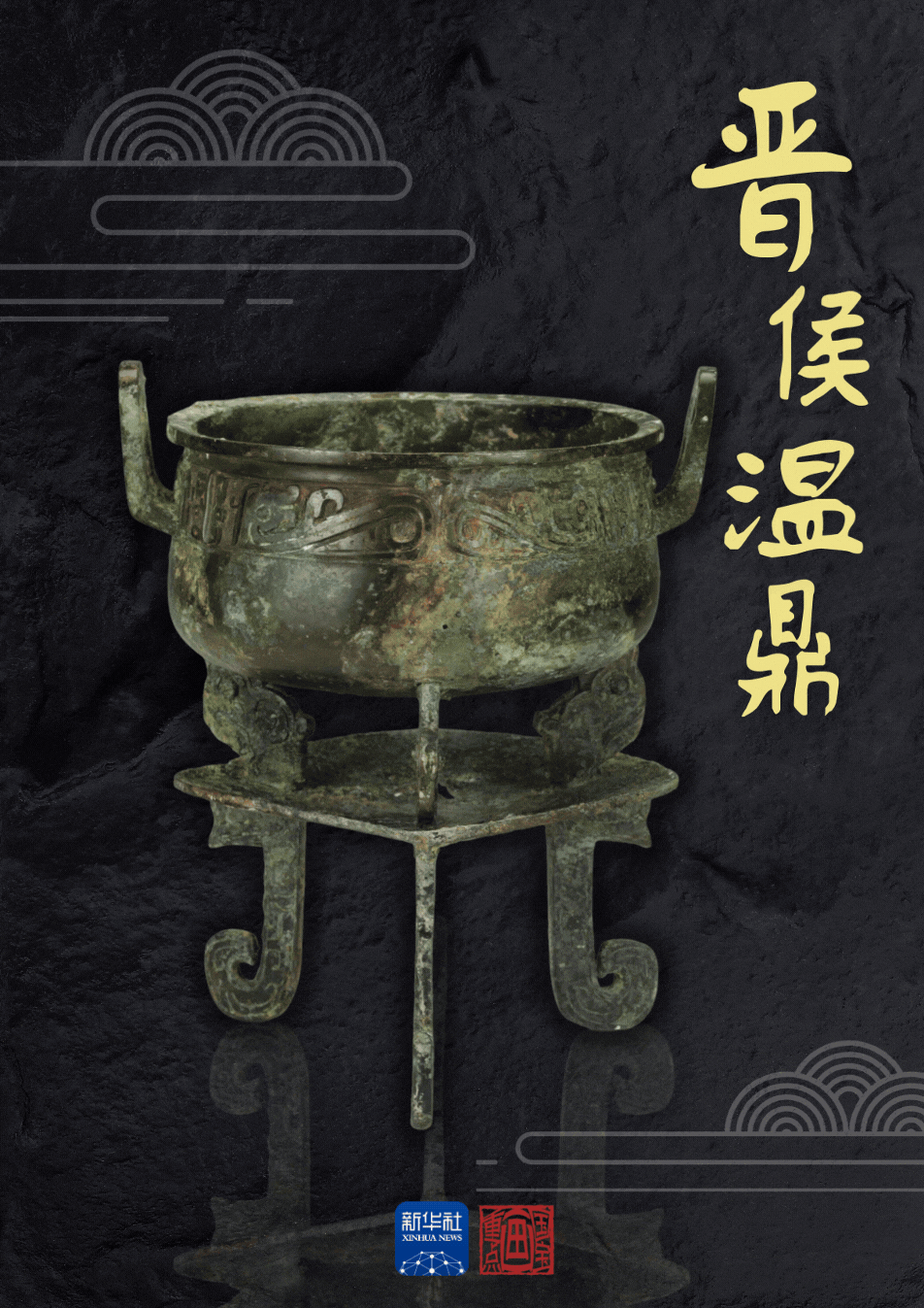 山西博物院這件非常典型的帶有托盤的溫鼎——晉侯溫鼎,方折唇,腹略鼓,雙附耳,三卷尾鳥形扁足。安婧介紹,最上方的圓形小鍋,可用來盛放食物,中部的托盤用來放置炭火,托盤底部還有三個十字形鏤孔,用于通風去灰。