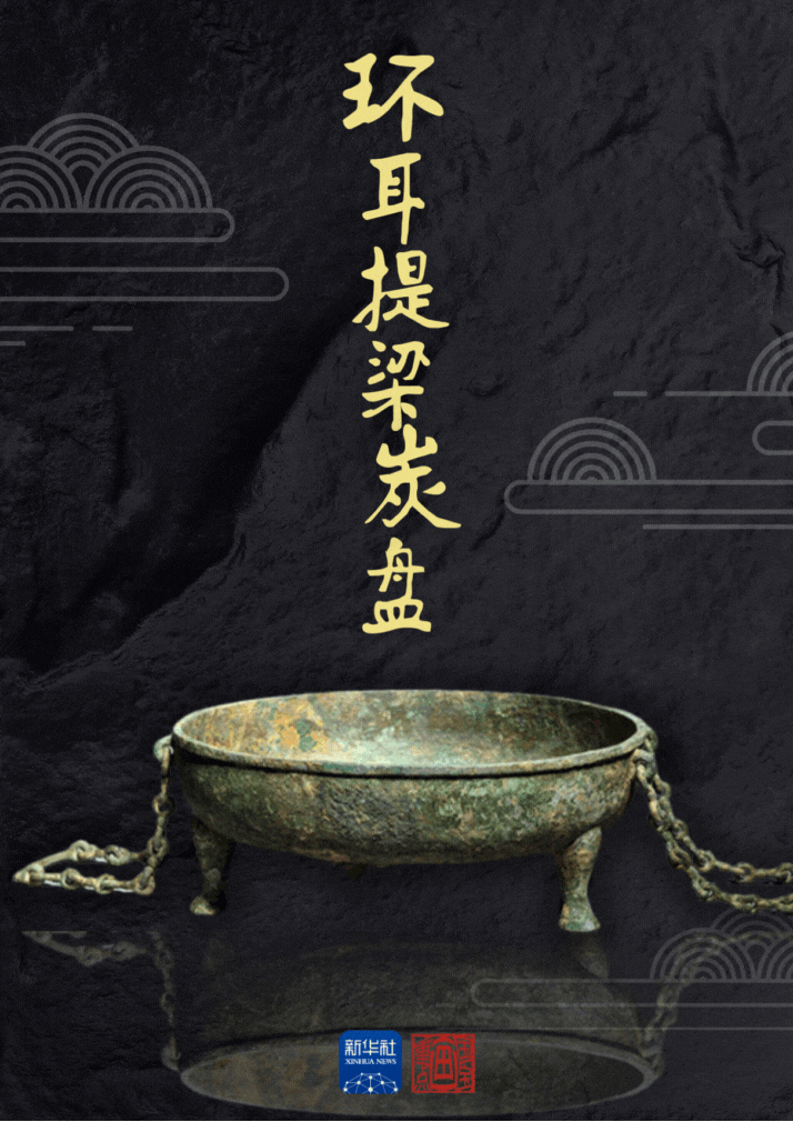 這件館藏于山西博物院內的環(huán)耳提梁炭盤,是用于存放木炭或其他燃燒材料的容器。盤為斂口、直壁,雙環(huán)形耳連接提鏈,下接三獸蹄足,獸蹄形足跟部線刻獸面紋。安婧介紹,古代的炭盤有時還會附有炭箕,通常為簸箕狀,可以用來添加炭火,炭箕底部還有孔,以便漏灰。