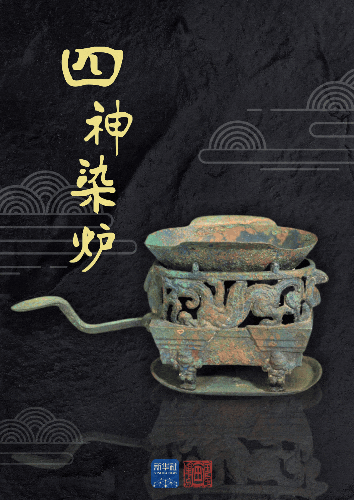 這件小巧的器具名為四神染爐,是一種飲食器,構造分為三部分。爐體呈橢圓形,下面有四個人形立足于承盤內。