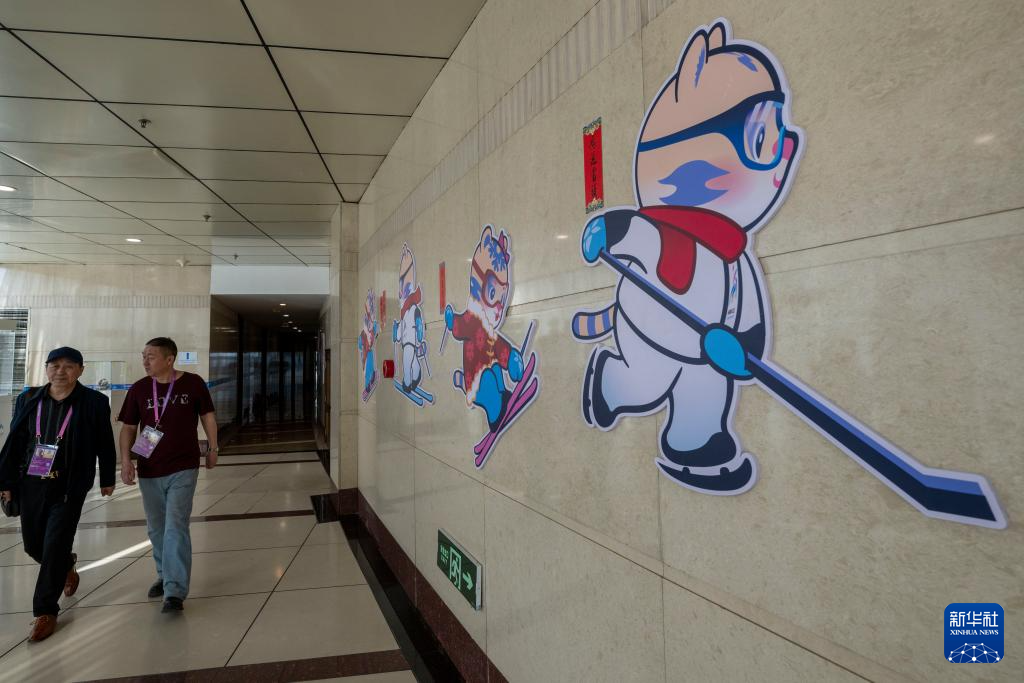 這是1月31日拍攝的主媒體中心內(nèi)的“亞冬號”展示牌。