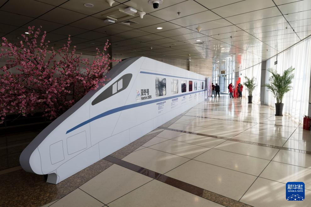 這是1月31日拍攝的主媒體中心內(nèi)的“亞冬號”展示牌。