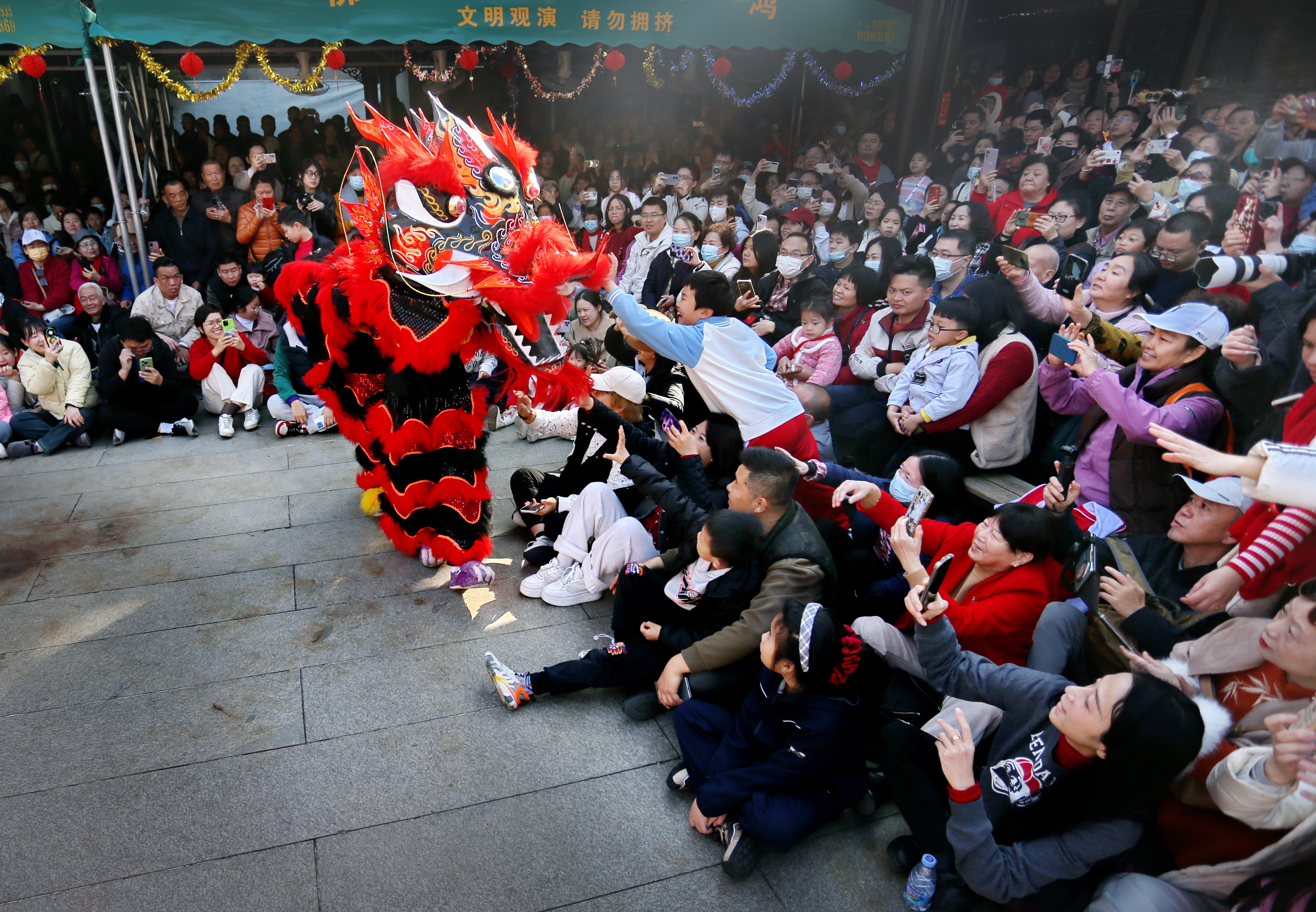 1月22日,南莊洪拳獅隊(duì)在廣東省佛山市禪城區(qū)南莊鎮(zhèn)進(jìn)行舞獅表演。