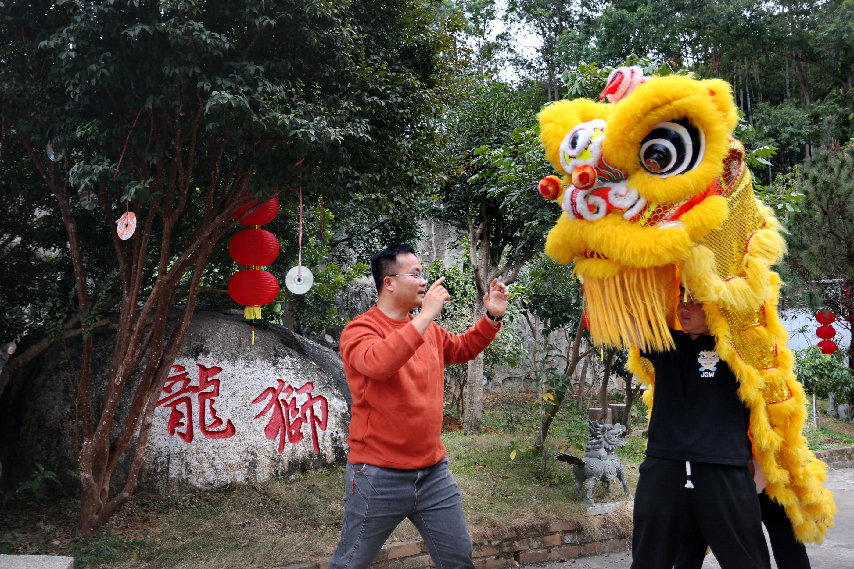 1月24日,在廣東省鶴山市鶴城鎮(zhèn),舞獅藝人關(guān)復(fù)炬指導(dǎo)少年進(jìn)行傳統(tǒng)舞獅訓(xùn)練。