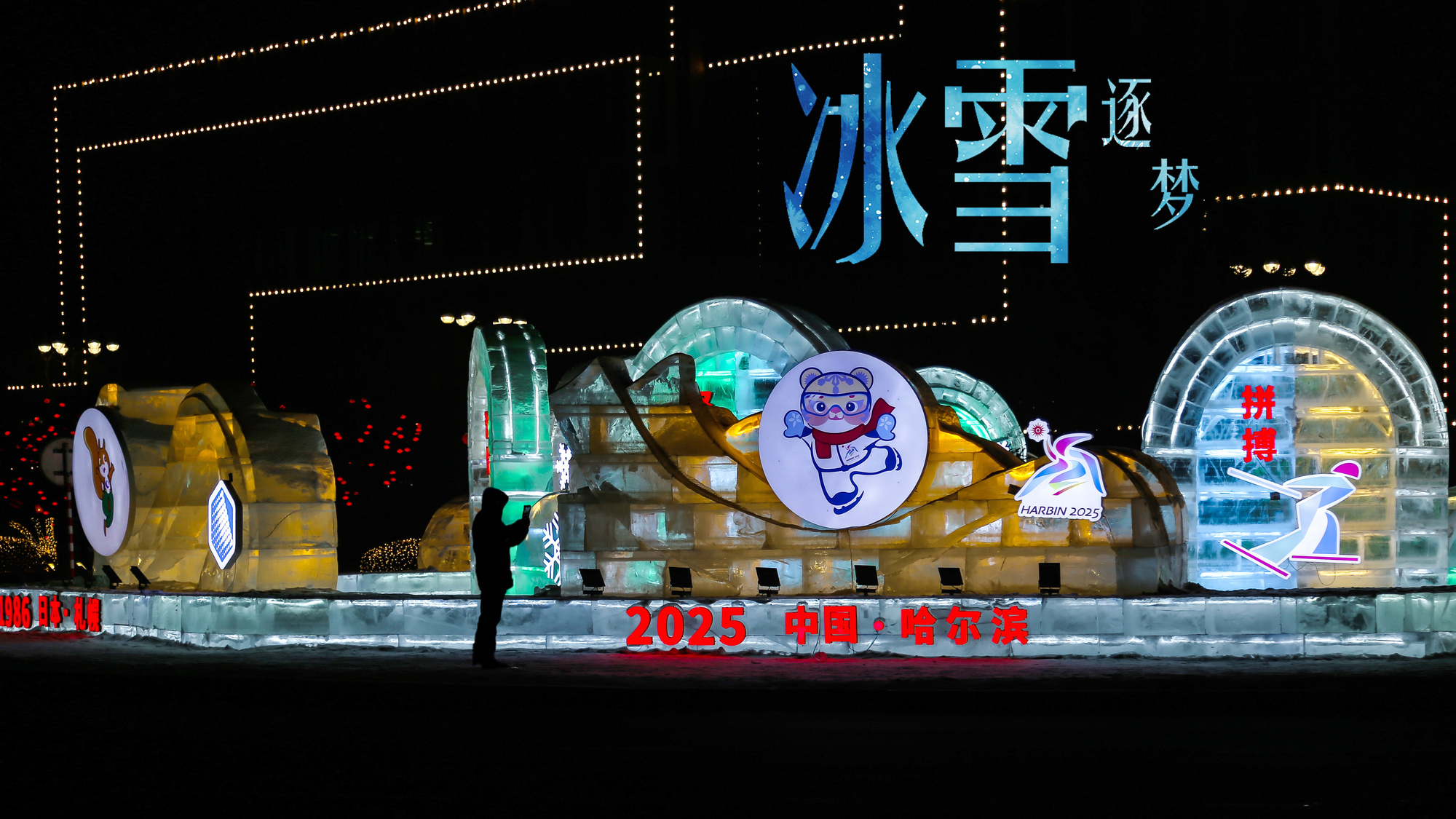 乙巳蛇年春節(jié)期間,哈爾濱街上人流如織,處處流光溢彩。