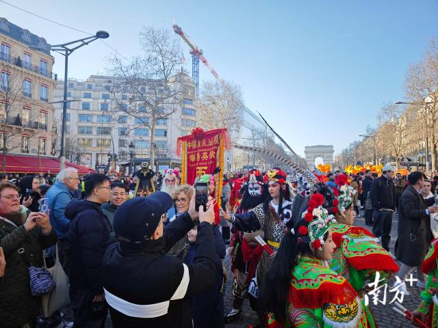 當(dāng)?shù)貢r(shí)間大年初五(2月2日)下午,被譽(yù)為“世界三大繁華中心大街”之一的巴黎香榭麗舍大街鑼鼓喧天,掌聲雷動(dòng),處處洋溢著熱鬧而喜慶的新春氣氛。