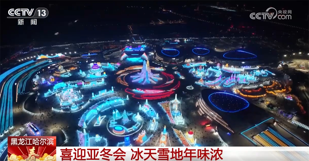 央視網(wǎng)消息:春節(jié)期間,很多人選擇來(lái)到哈爾濱冰雪大世界,在冰天雪地里感受濃濃的年味。恰逢第九屆亞冬會(huì)即將召開,園區(qū)中景觀設(shè)計(jì)充滿亞冬會(huì)元素。當(dāng)春節(jié)與亞冬會(huì)相遇,在哈爾濱冰雪大世界里是什么景象呢?接下來(lái),我們跟隨總臺(tái)記者鏡頭,去感受一下夜晚冰雪大世界里的亞冬會(huì)氛圍和濃濃年味。